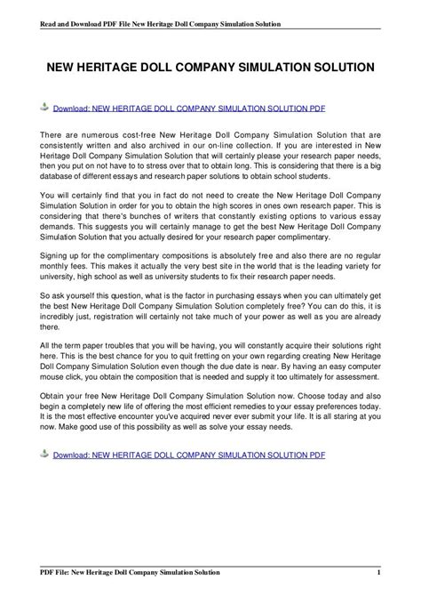 Reading Online NEW HERITAGE DOLL COMPANY SIMULATION SOLUTION Nook Open Library